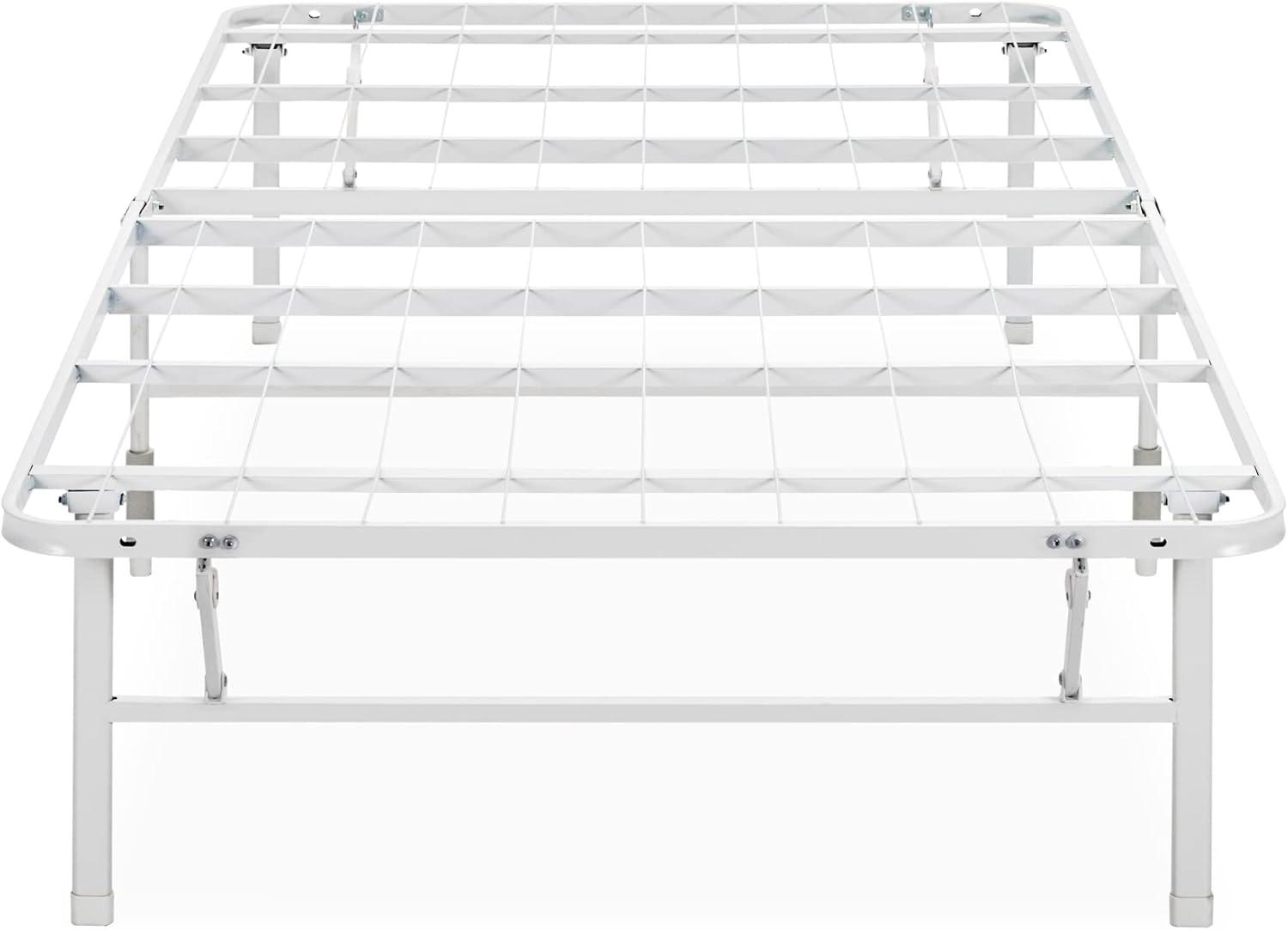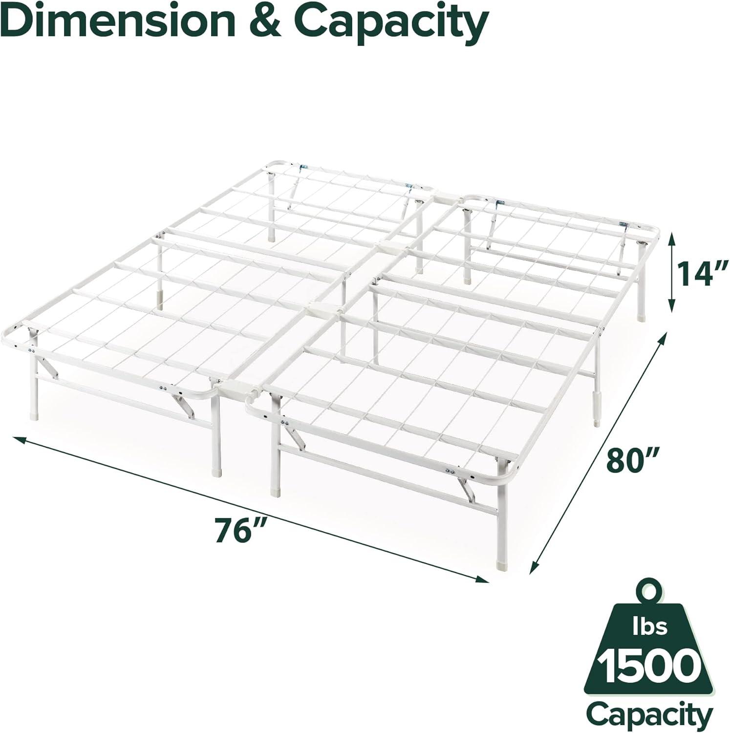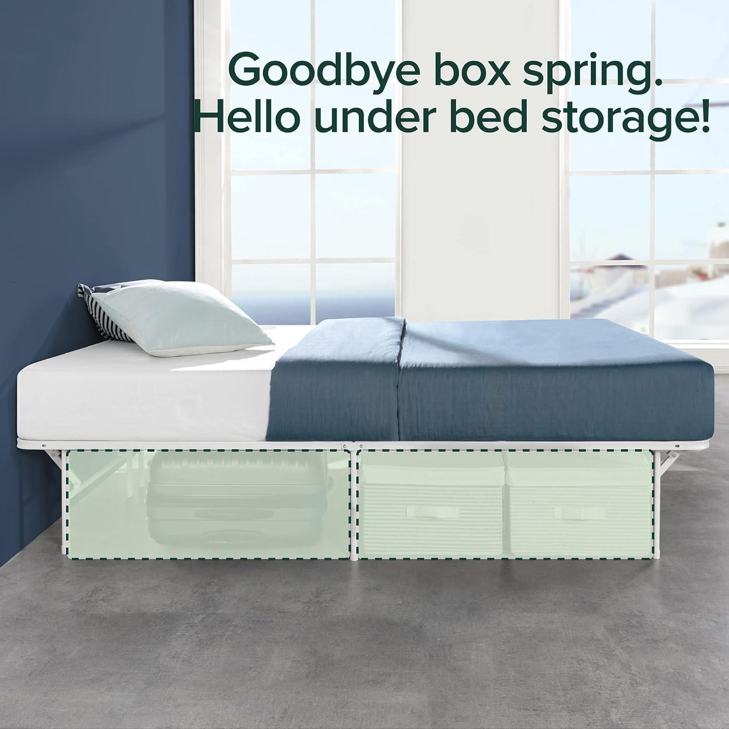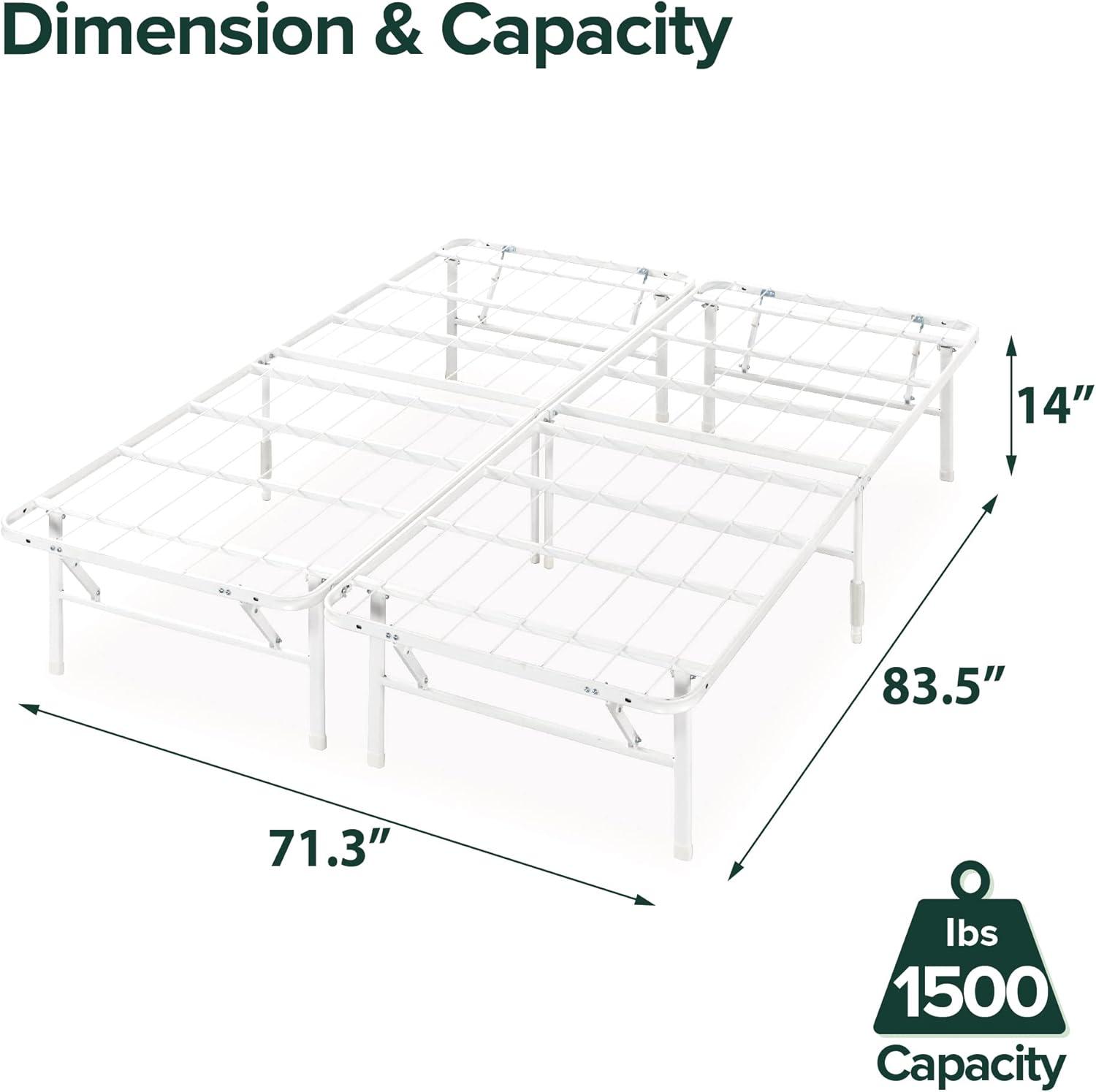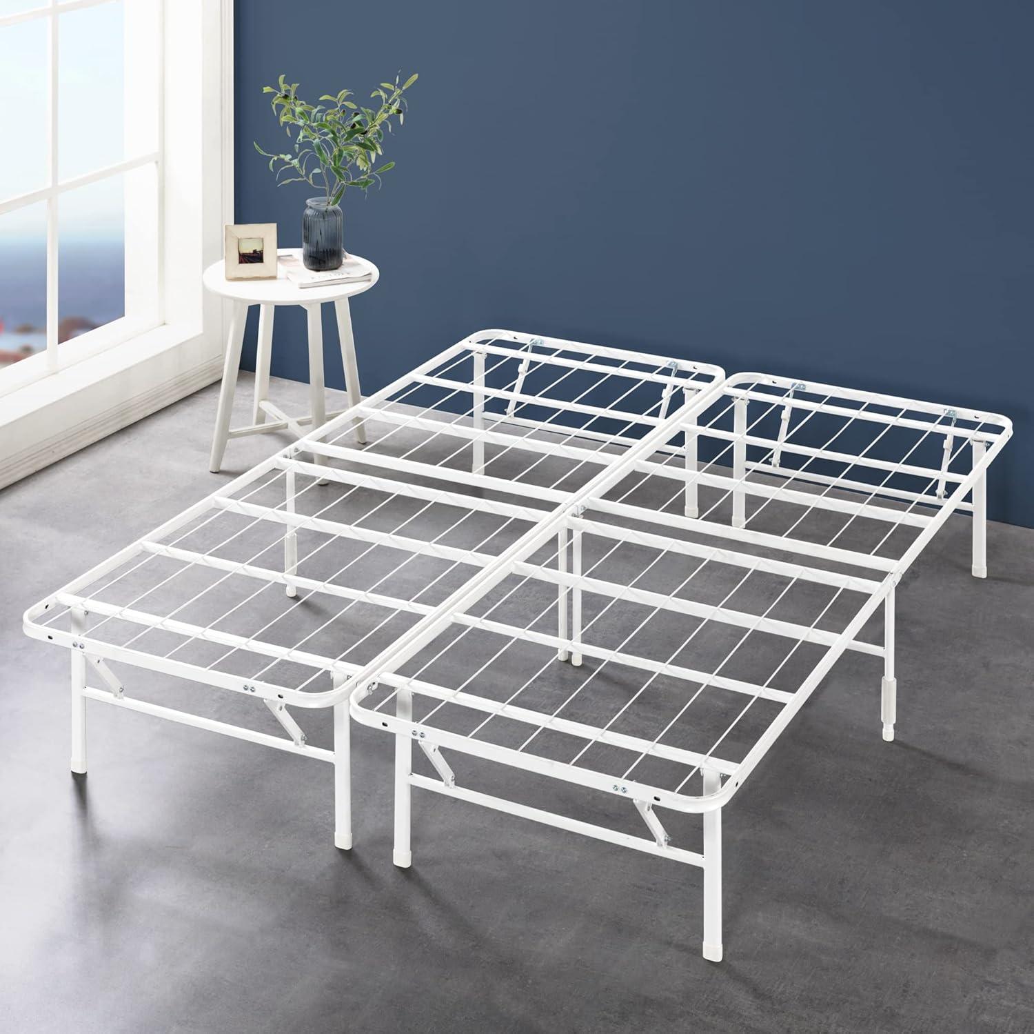 Get your hands on our newest Zinus Rumi 14in Queen Metal Bed Frame, Quick Assembly SmartBase® Mattress Foundation, Heavy Duty Sturdy Steel with No Box Spring Needed, Eco-Friendly Packaging, Black(White) and enjoy a limited-time discount offer.
