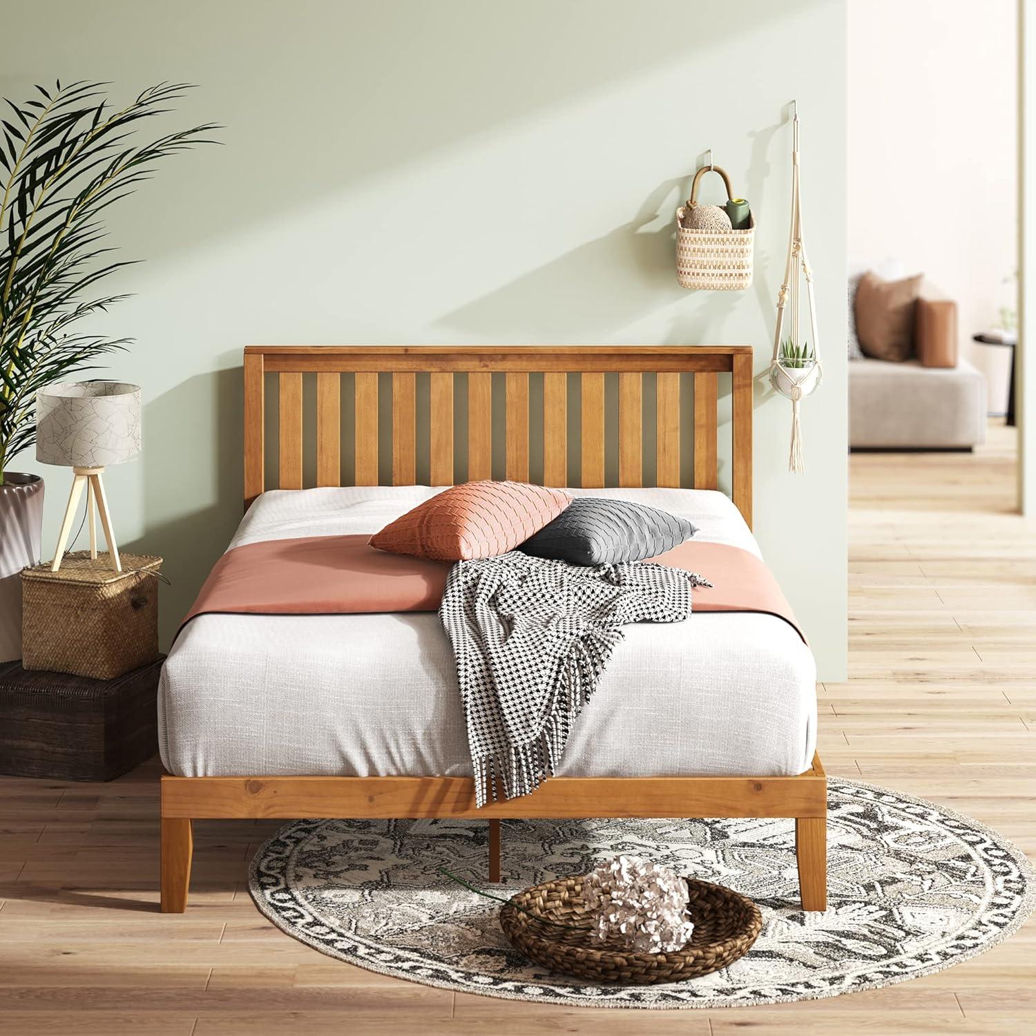 ZINUS Vivek Wood Platform Bed Frame with Headboard, Solid Wood Foundation with Wood Slat Support, No Box Spring Needed, Easy Assembly, Queen(Rustic Pine)